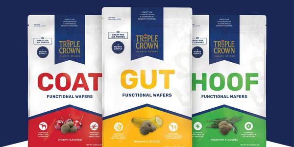 Triple Crown has formulated these nutritional wafers in order to address the specific needs of your horse. These wafers come in three different flavors and target skin and coat health, promote digestive and gastric health, allow with supporting hoof health.
